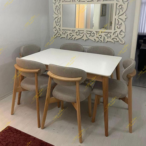 میز فوق از جنس ام دی اف با روکش وکیوم میباشد و جنس پایه های آن از چوب راش گرجستان میباشد رنگ صفحه در تمام سفارشات ارسالی ثابت و سفید میباشد