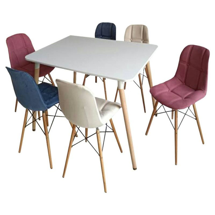 میز وصندلی ناهارخوری جنس پارچه مازراتی میباشد ابعاد نشیمنگاه 45 در 55 میباشد