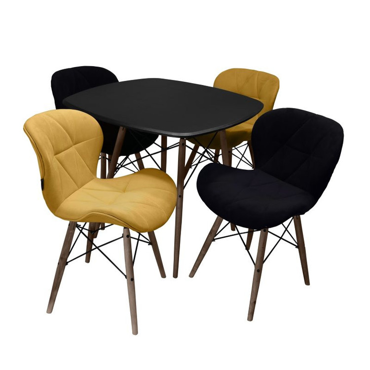 توضیحات صندلی: صندل های این میز ناهارخوری دارای دو رنگ خردلی و مشکی میباشد ک شما میتوانید با انتخاب گزینه چند رنگ مطابق همین عکس براتون ارسال شود و با انتخاب رنگ مورد علاقه خود رنگ مد نظر خودتان را انتخاب کنید جنس فریم صندلی از چوب و پارچه آن چرم مصنوعی میباشد