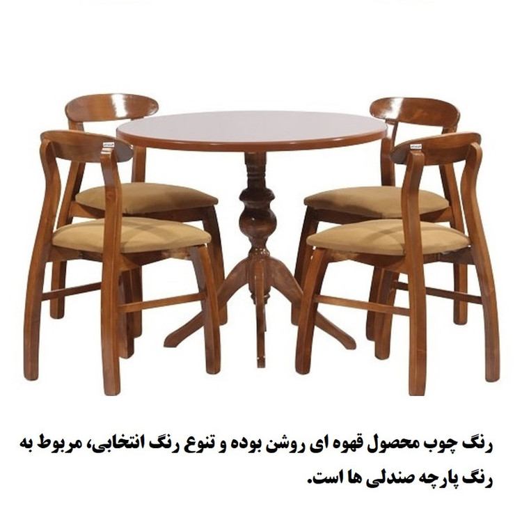 قطر صفحه میز 90 الی 100 سانتیمتر.| دارای صفحه موجدار شکیل و زیبا(طرح اصلی چوب).| صفحه میز روکش چوب راش.