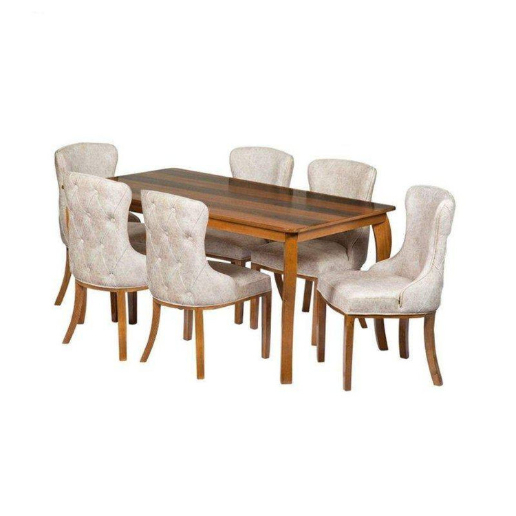 میز فوق 6نفره میباشد با اسکلت تمام چوب پایه میز از چوب راش گرجستان تهیه شده است و توسط دستگاه خراطی شده رنگ میز ثابت و فندقی میباشد