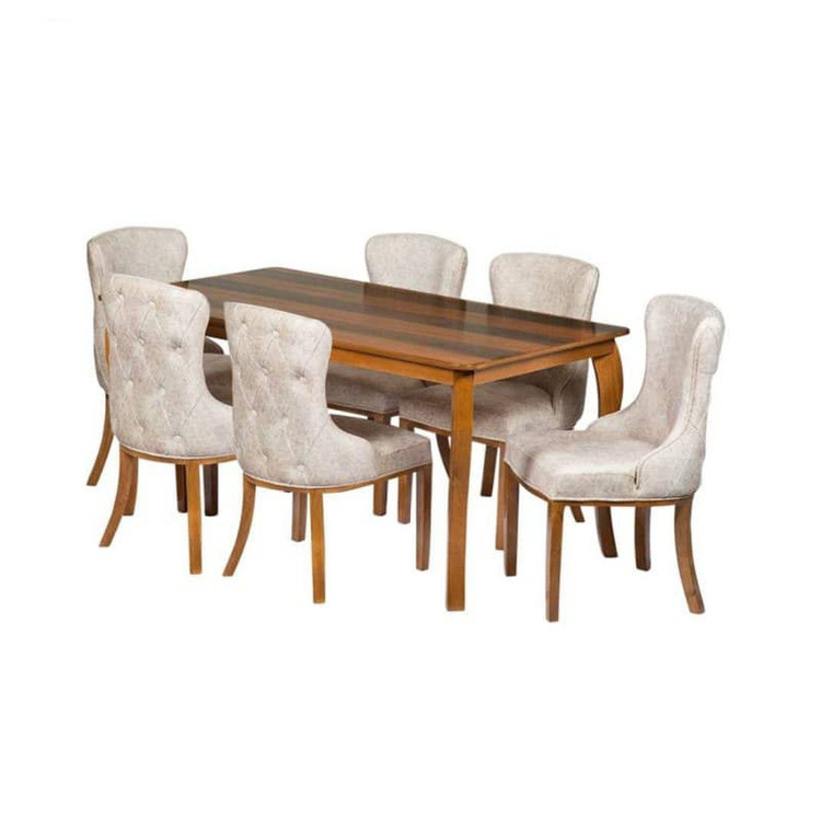 توضیحات میز: میز فوق 6نفره میباشد با اسکلت تمام چوب پایه میز از چوب راش گرجستان تهیه شده و پایه های آن توسط دستگاه خراطی شده است رنگ میز فندقی میباشد ک مطابق عکس ارسال میشود
