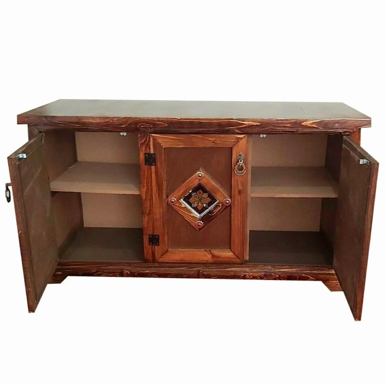 رنگ چوب قهوه ایی با منبت های اینه ایی ک زیبایی آن را دو چندان کرده است