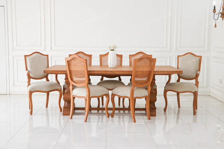 ست میز و صندلی ناهارخوری 8نفره .مدل مینیمال پشت حصیری.خرید از تولید کننده.رنگ چوب و پارچه قابل تغییر ب سلیقه مشتری
