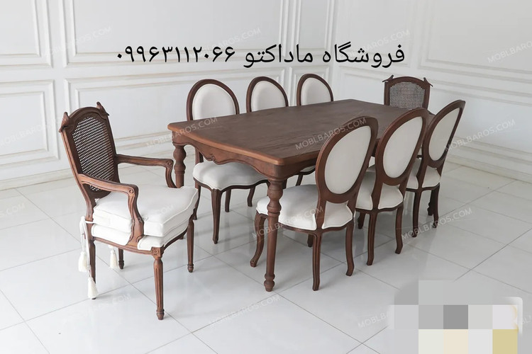 میز و صندلی ناهارخوری ۸نفره پشت حصیر مدل فرانسوی